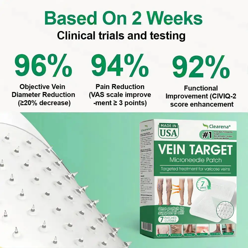 ๐พ๐ก๐๐๐ง๐๐ฃ๐ยฎ VeinTarget is the first GMP-certified Alpine herbal microneedle patch with a clinically proven 96% success rate in treating chronic venous insufficiency at home. Its breakthrough transdermal delivery system penetrates 100x deeper than topical creams and delivers visible vein reduction in just 7โ14 days. Skip the costly surgical procedures and restore healthy circulation naturally โ all from the comfort of your home.