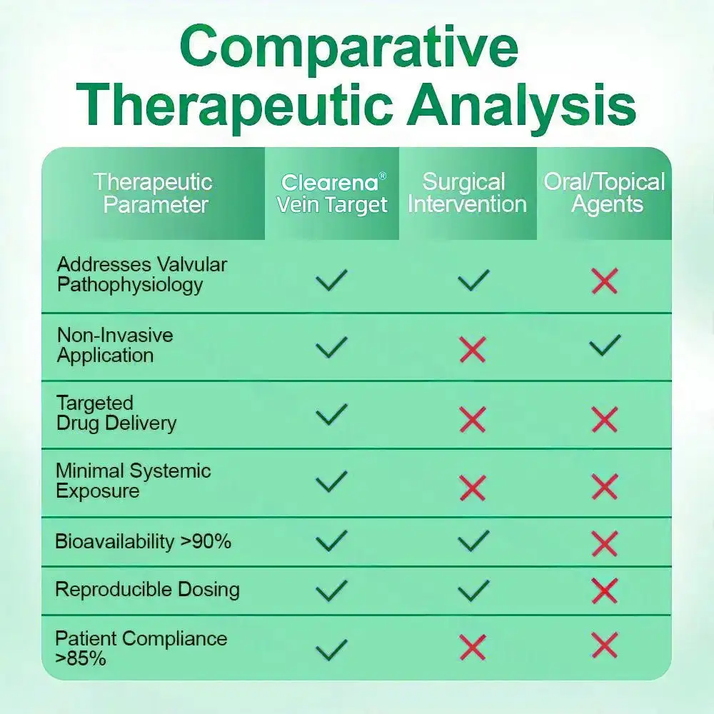 Concentrated phytoactive compounds (flavonoids. saponins. and phenolic acids) are delivered directly to the venous microenvironment. achieving local tissue concentrations 100-fold higher than systemic administration. ensuring therapeutic efficacy at the site of pathology.